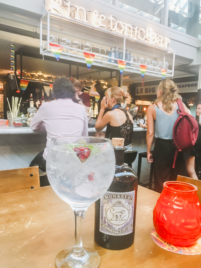 The Big O and I gobbled our way through the food hall, sampling Chicken Masala, Fritto Misto, Fish & Chips, etc. But the highlight of the evening was the Gin & Tonic Bar. We drank a serious amount of beers traveling through Europe over a month. Although European beers – especially Belgian Trappist beers – are all tasty, it was nice to switch to something else. For that night, Gin & Tonic was our choice of drink. I think we sat there for a couple of hours, sipping a few specialty gin & tonics.