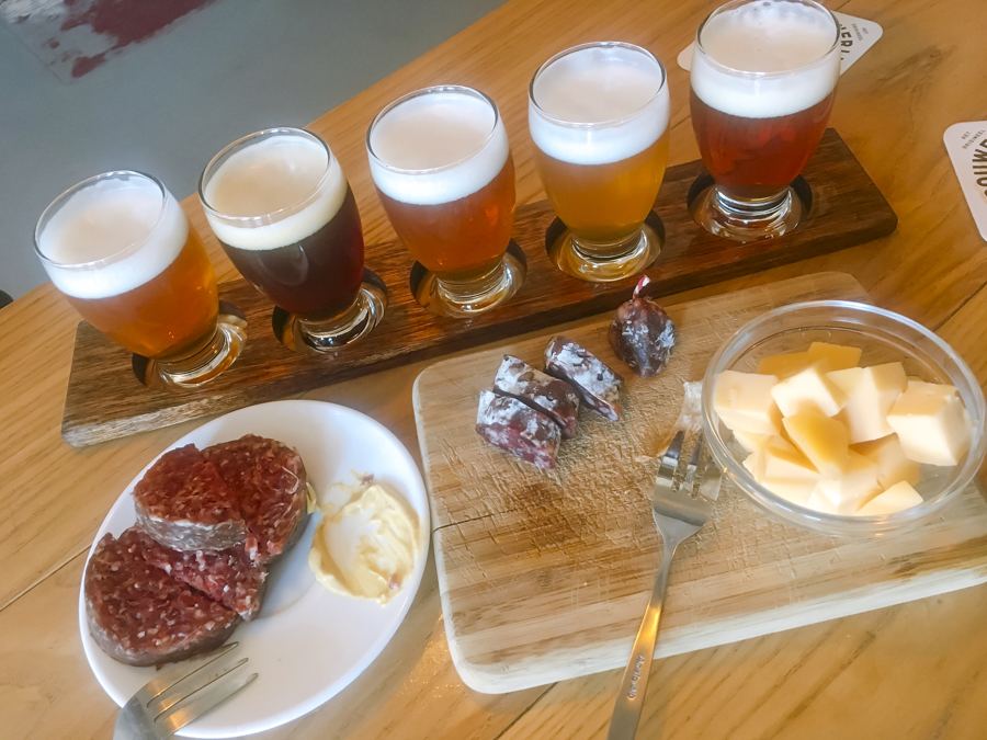 Be warned that this brewery is a busy place. You have to be lucky to get a terrace seat. We somehow managed to get an indoor table. But at first, we couldn’t even order their beer flights (€10) because they ran out of the cups. We also got to try ox sausage with the cheese plate over a variety of beer. We weren’t a big fan of ox sausage, but if you try, eat with mustard.