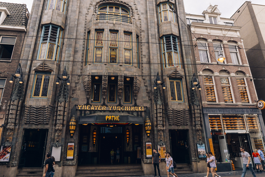 Walk towards Pathé Tuschinski Theater. It’s a historic cinema elaborately decorated in the art deco style. It’s something nice to look at from the outside to appreciate the architecture.