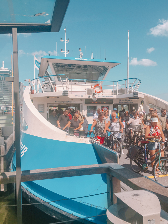 On the last day in Amsterdam, let’s explore beyond the Amsterdam Centrum. Noord is a family-friendly residential and industrial neighborhood preferred by locals who want to live away from the expensive, crowded area. Behind the Amsterdam Central Station, it’s only a five-minute ferry ride away across the river (known as “the IJ”). And the city wants to encourage people to sprawl out, so the ferry is free for everyone and runs quite often.