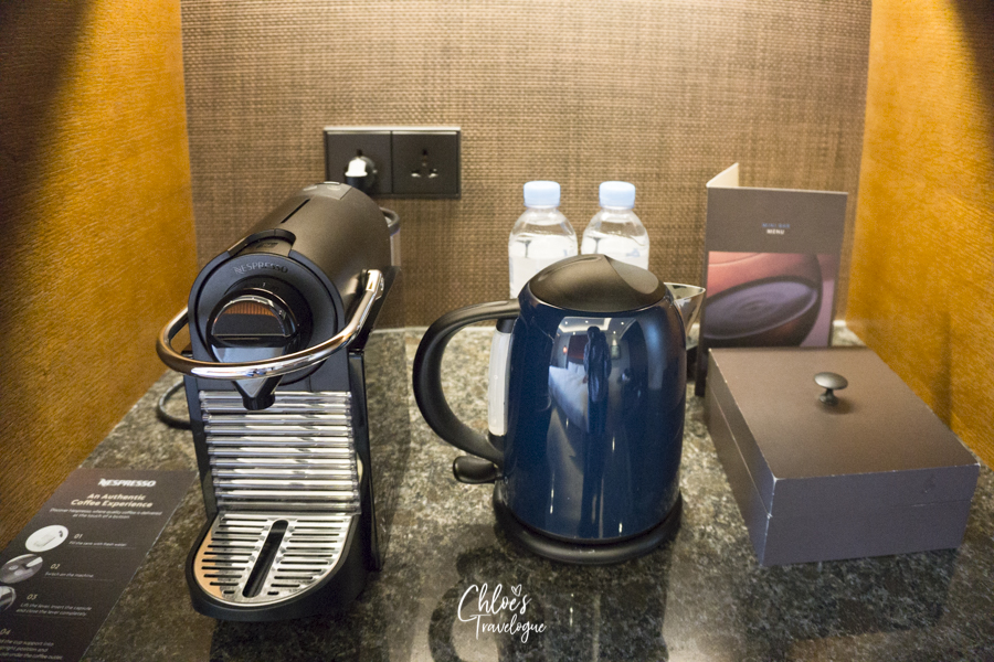 The room also featured many details, including Nespresso machine, complimentary mineral water, USB chargers, and cabinet spaces. These are what you would expect from a five-star hotel room, but I still appreciated these small details that make a difference.