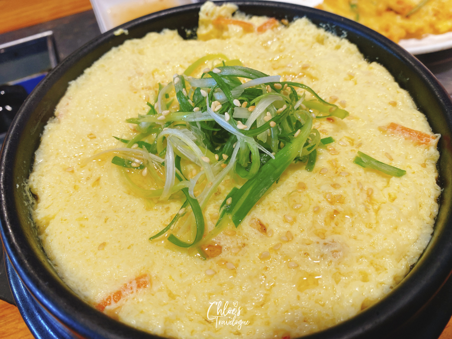 The servers generously fill up the outer rim of the on-table grill with steamed egg and corn cheese. Cooked with dripping pork lard, you cannot keep your spoon away from them.