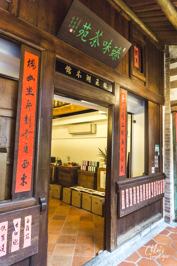 The Lin family started as a fortunetelling business and later opened a tea house. This typical Fujianese house is said to be the best preserved, traditionally renovated Taiwanese shophouse. Traditional Fujianese architecture does not use a single nail but only use snatches. All wood panels are designed and cut like puzzle pieces to precisely fit one another. Instead of a fixed glass window, a board is put in place to open and close the hole on the wall. This tea house has an upper balcony inside, where the shop owner used to supervise the employees working downstairs. This Lin family residence is still an operating tea house; you can purchase and brew tea.