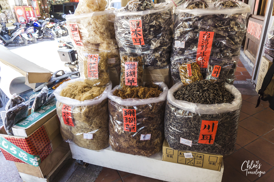 Dadaocheng is dotted with many similar tasteful souvenir shops that sell tea bags, dried fruits and fish, as well as Chinese herbal shops and traditional pharmacies. Enjoy wandering around and try other shops, too.