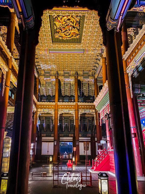 Enjoy these dazzling Joseon architecture inside the King’s living quarters without the crowd at night.