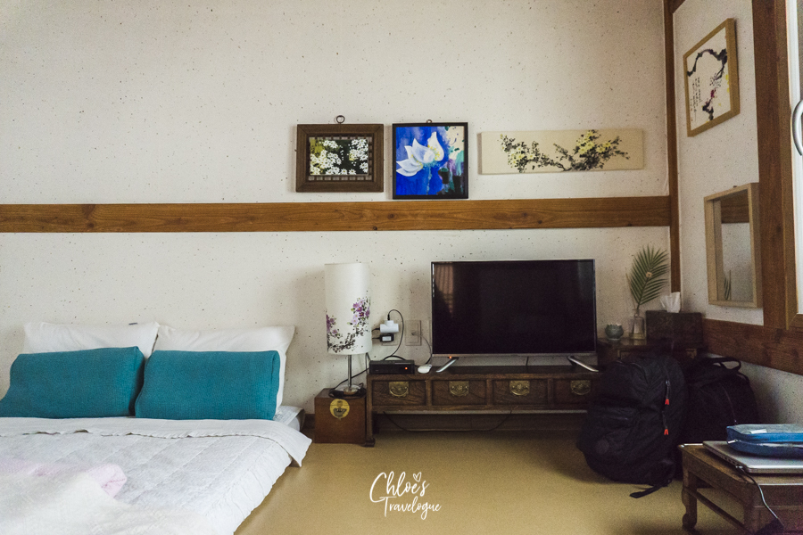 Hanok Raon (Book here) is a superb hanok stay near Hwangnidan-gil. The rooms offer a traditional futon bed on the ondol floor (underfloor heating system). Provided breakfast ingredients can be used in the shared kitchen.