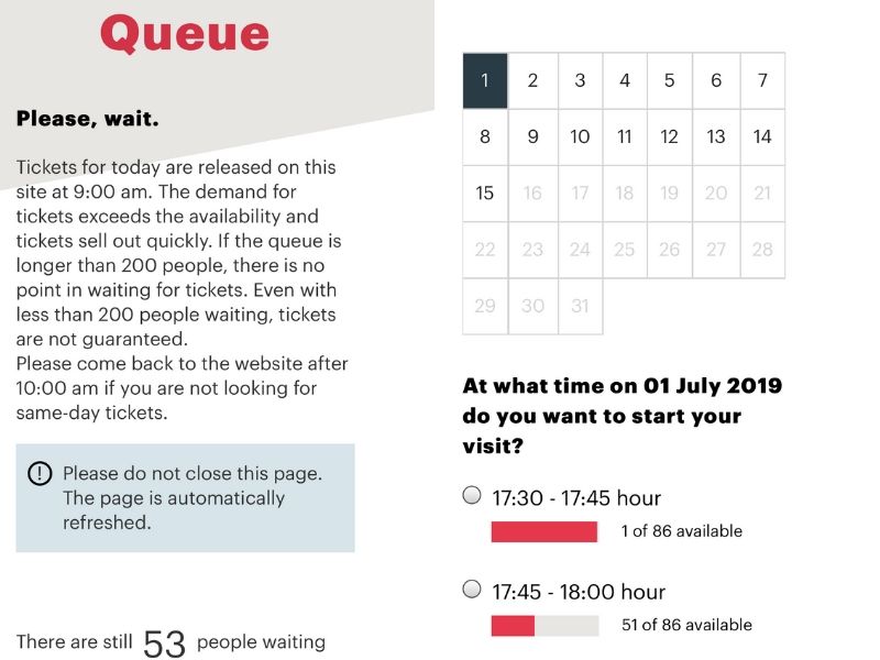 Update on Plan B (2024): The above plan B was suggested based on my experience when the museum used to release 80% of tickets two months in advance and the rest 20% on the day at 9 am local time. Now that the museum releases all tickets 6 weeks in advance, I’m not certain this strategy still works. Some of my readers suggested checking out TicketSwap.