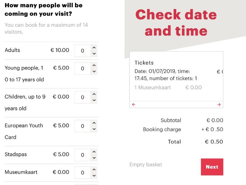 While Museumkaart holders can visit Anne Frank House without paying for admission, they still need to book their tickets and pay the booking fee (€1 per ticket). Go to the official website, select the desired date and time, and select “museumkaart’ option at check out to get complimentary admission.