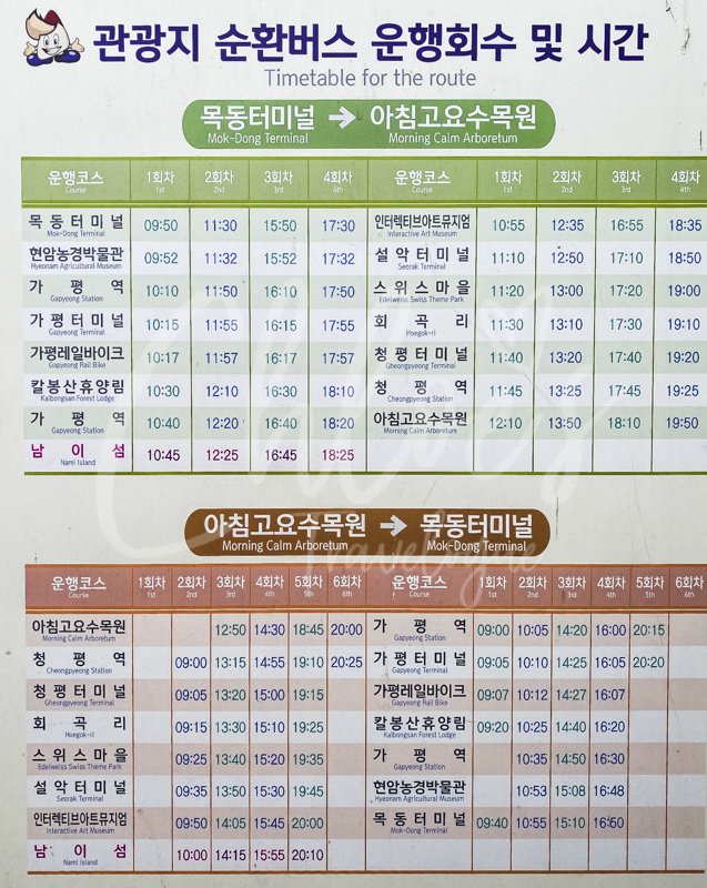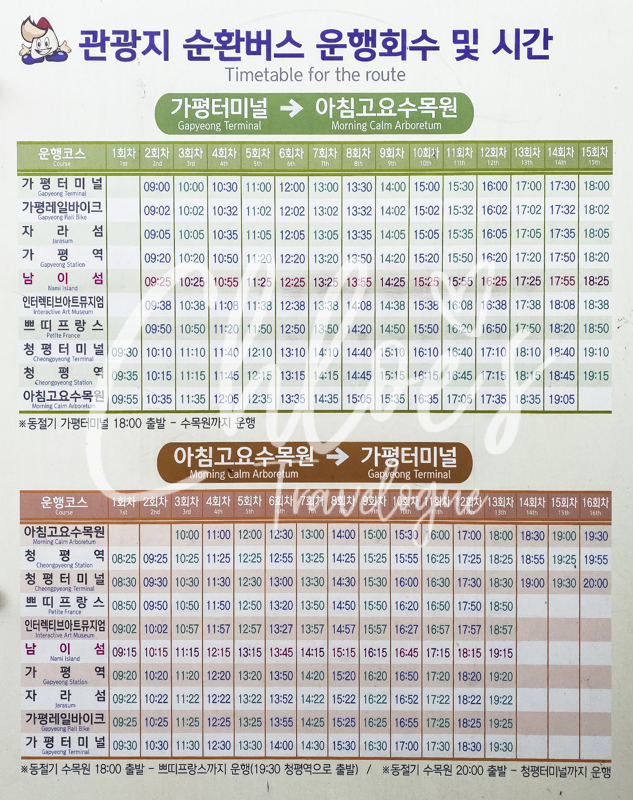 But if you plan to stop by Petite France or the Garden of Morning Calm later, it makes sense to hop on Gapyeong City Tour bus. More details and tips below.