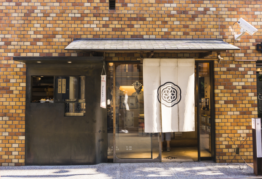 HIGASHIYA man is a high-end wagashi (Japanese confectionery) shop. In the Aoyama neighborhood flourishing with luxury retailers, I did not expect to find a Japanese sweets store. On the way to Café Kitsuné Tokyo, I luckily stumbled upon this shop; I was drawn by the tiny yet Japanese chic storefront adorned with Noren (Japanese curtain) contrasting against the red brick building.