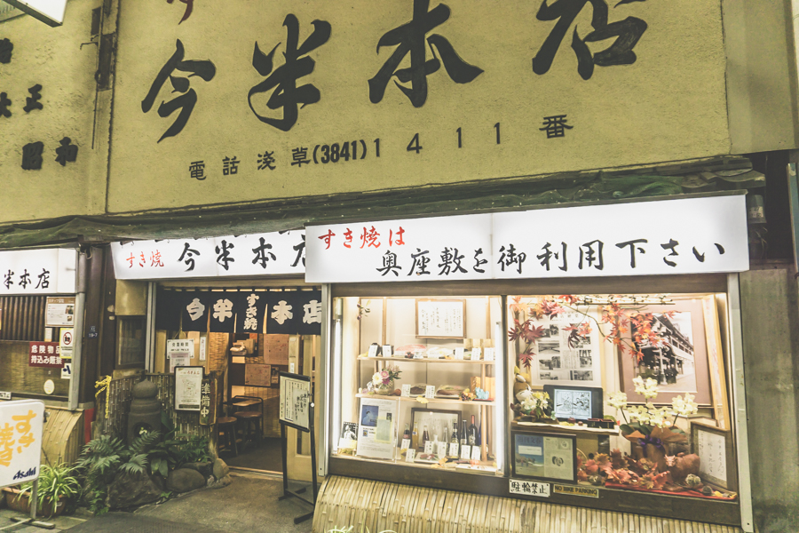 Imahan Honten (今半本店) is a well-established sukiyaki specialty restaurant in Asakusa. It serves Tokyo-style sukiyaki. Sukiyaki is cooked at the table. Remember Bill Murray in the movie, Lost in Translation, complaining what kind of restaurant makes you cook your own food? This restaurant is one.