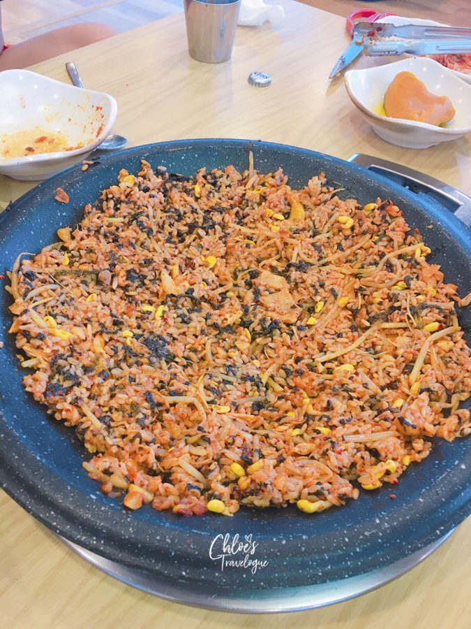 Leave some grilled pork and clams, and ask for fried rice. The server will help you cook rice on the grill with kimchi, bean sprout, and leftover proteins. It is the best way to finish up your meal.