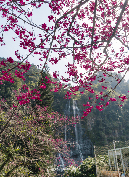Look at this gorgeous cherry blossom right in front of Wulai Waterfall!
